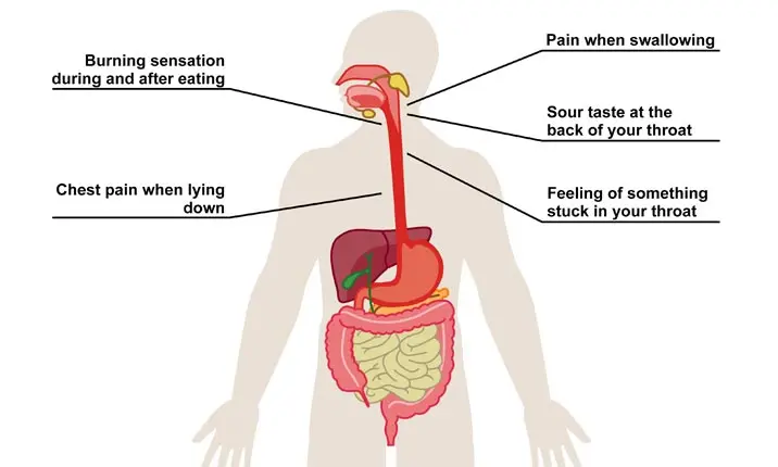 - A painful burning sensation in your oesophagus, especially during and after eating